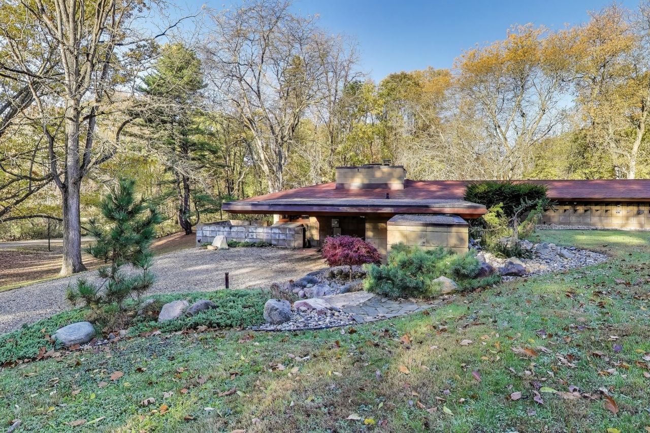A rare opportunity to own a living work of art. Designed in 1948 by Frank Lloyd Wright, the Weisblat House is one of only four Wright-designed Usonian homes in The Acres, a 70-acre wooded enclave on the National Register of Historic Places. Just hours from Chicago and Detroit and near Grand Rapids airport, this mid-century retreat blends architectural pedigree, modern comfort, and natural beauty. Built of concrete block and Honduran mahogany, the home features ribbon windows, cantilevered rooflines, and walls of glass that blur the line between indoors and out. The open living and dining area is anchored by a working fireplace. The home offers three bedrooms and 2.5 baths, flexible living spaces, serene woodland views, a rear family room overlooking a frog pond, a screened porch, greenhouse, and a year-round enclosed lap pool. Set on two acres, the property offers rare privacy and enduring beauty.
