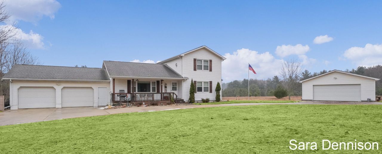 Beautifully updated home set on nearly 15 private acres in Big Rapids. This spacious property offers 4 large bedrooms, 3.5 baths, main floor laundry, and a generous pantry. Bright, comfortable living areas open to a screened-in porch and deck overlooking peaceful views. Enjoy an impressive 4-stall attached garage, a 2-stall detached garage, a greenhouse, and a covered outdoor space with a firepit perfect for relaxing or entertaining. Cold Creek winds through the property, bringing abundant wildlife and adding to the serene, natural setting.