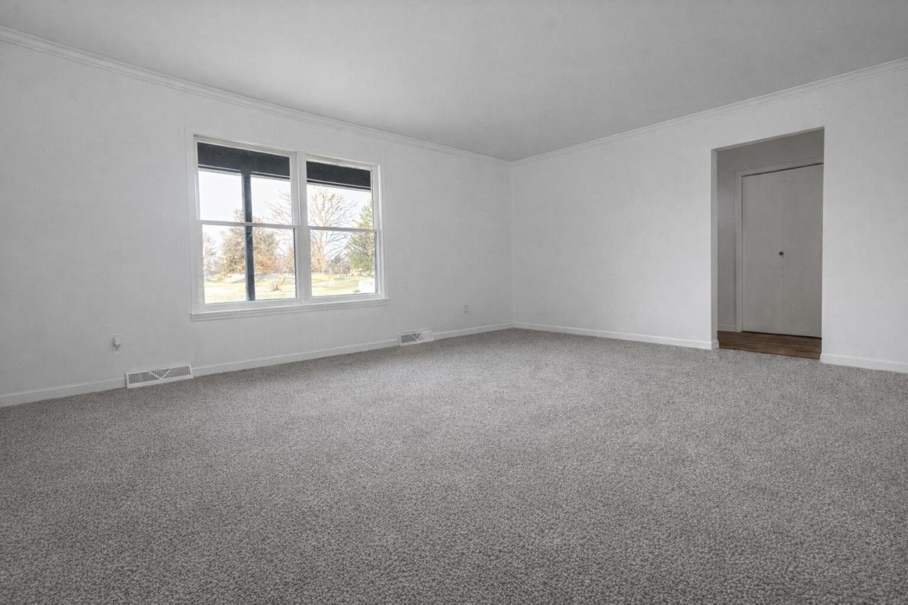 Move-in ready 3 (Possibly 4) bedroom ranch on a corner lot in Lakeview School District with no HOA. Extensive exterior updates include brand new roof, siding, insulation, gutters, soffits, fascia, custom exterior metal trim work, and paint. Fresh interior paint, updated flooring, fixtures, and vanities throughout most of the home. Open dining area with deck access to newly fenced backyard. Attached 2-car garage plus 18 x 35 barn with 12 door and concrete floor. Unfinished basement offers storage or future finishing with bonus half bath.