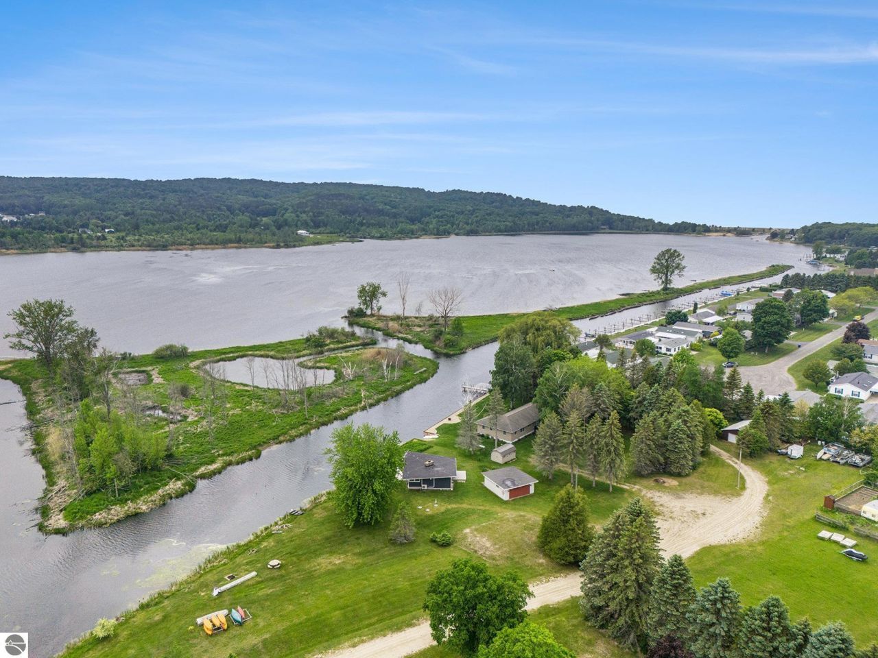 Enjoy life on the water with approximately 103 feet of frontage on the Arcadia Lake canal and direct access to the blue-green waters of Lake Michigan. This inviting home captures both sunrise views toward the Arcadia Marsh and M-22 bridge and sunset views toward the Arcadia pier and Lake Michigan. Inside, you will find warm wood ceilings, expansive windows, and a bright open living space that brings the outdoors in. The updated kitchen, comfortable bedrooms, and spacious deck create the perfect setting for relaxing, entertaining, and enjoying Northern Michigan waterfront living. Option to install a permanent dock may exist. Ideally located near Camp Arcadia, Arcadia Marsh Nature Preserve, Arcadia Bluffs, Crystal Mountain, and world-class fishing, hiking, and four-season recreation, this is a great opportunity to enjoy the Arcadia lifestyle.