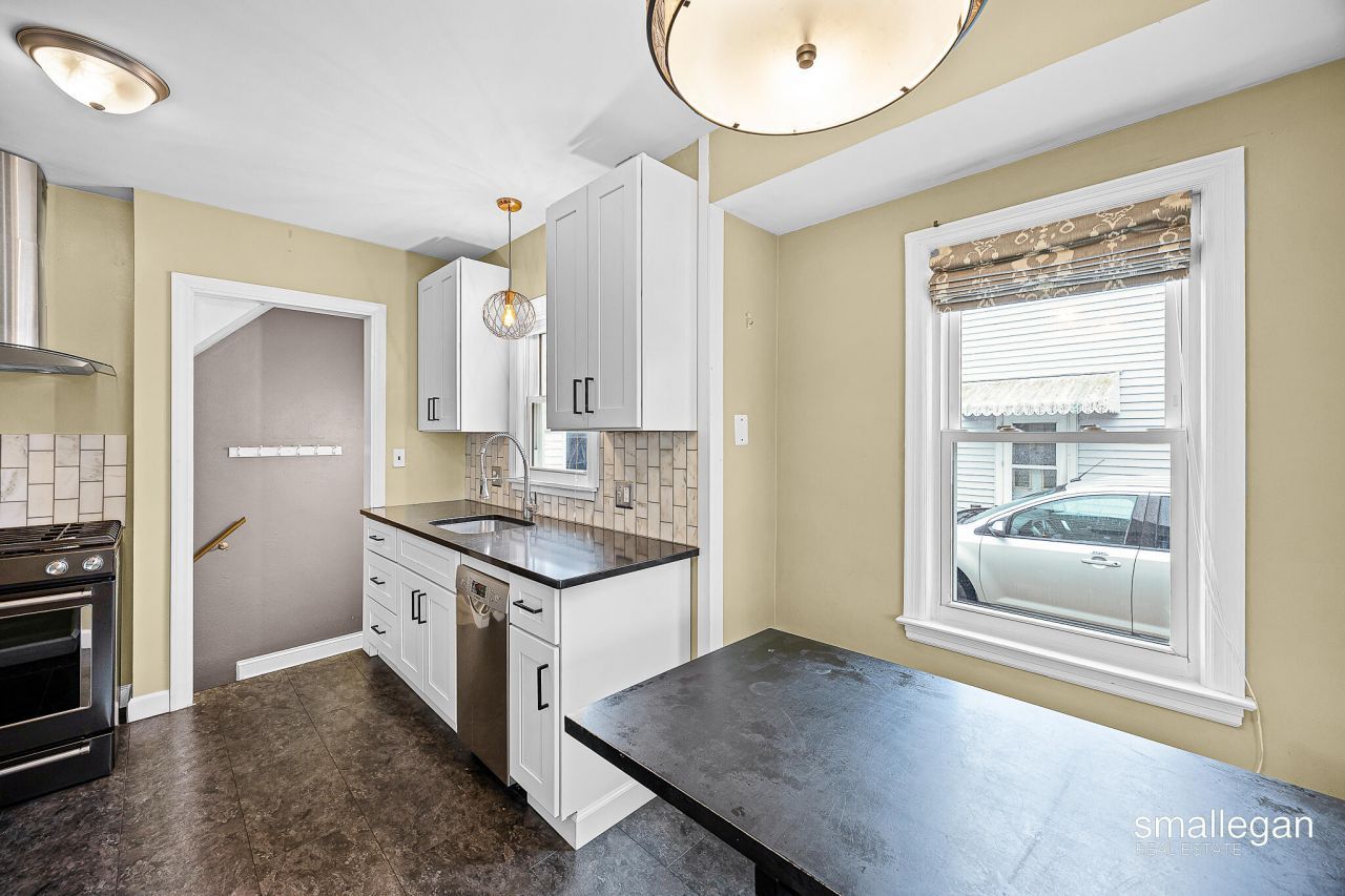 Recently renovated 3-bedroom home located in a convenient neighborhood within walking distance of Richmond Park and close to John Ball Zoo, shopping, dining, and everyday amenities. The updated kitchen features quartz countertops, modern cabinetry, stainless steel appliances, and a bright dining area with large windows for natural light. The living room offers hardwood flooring and a gas fireplace that creates a comfortable and inviting gathering space. Upstairs provides additional bedroom space with built-in storage and flexible layout options. The finished lower level offers additional living space ideal for a recreation room, office, or workout area. Outside, enjoy a welcoming front porch, backyard space, and a detached garage along with a storage shed for added convenience. A great opportunity to own a move-in ready home in a desirable location close to parks and local attractions.