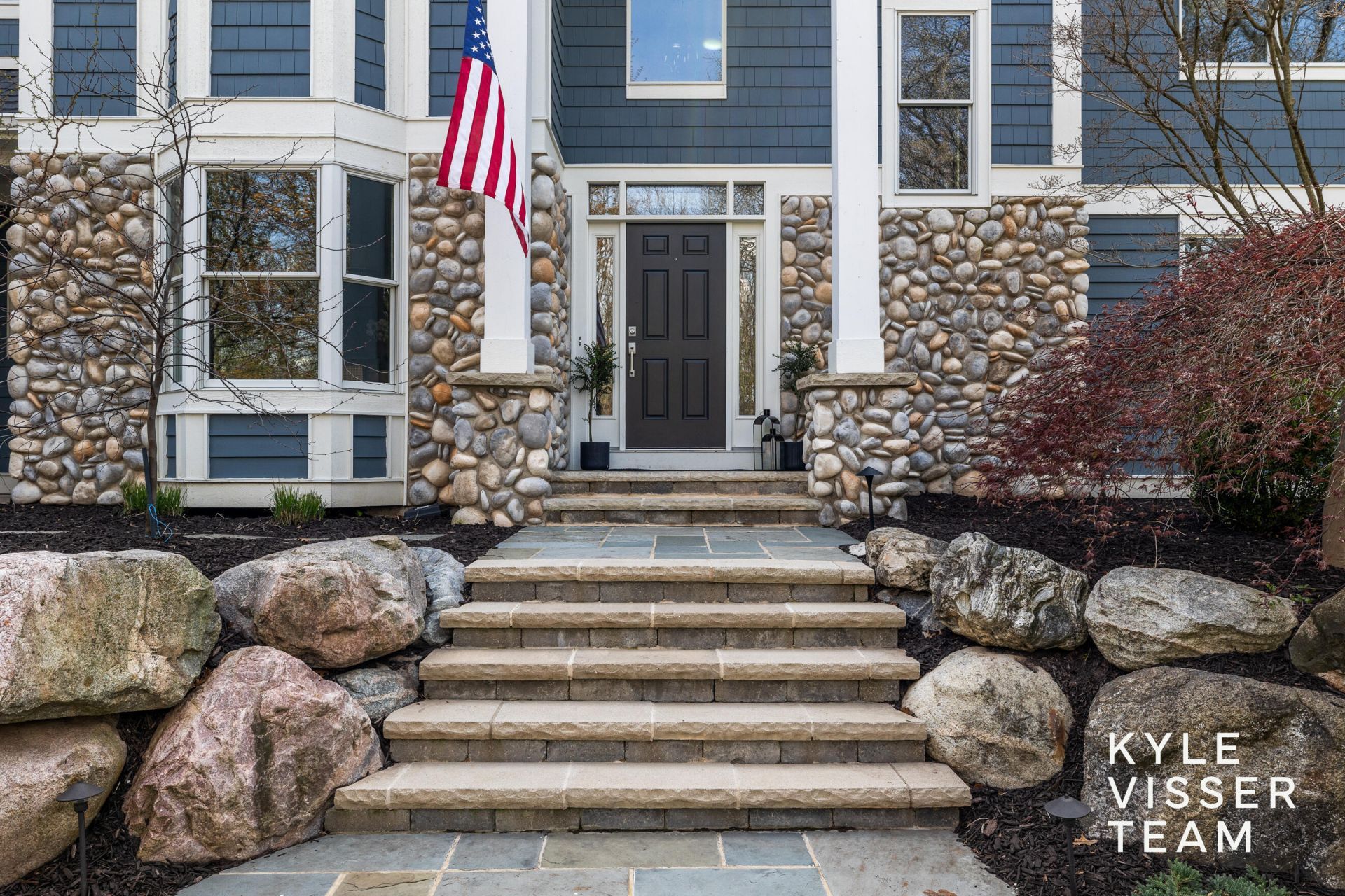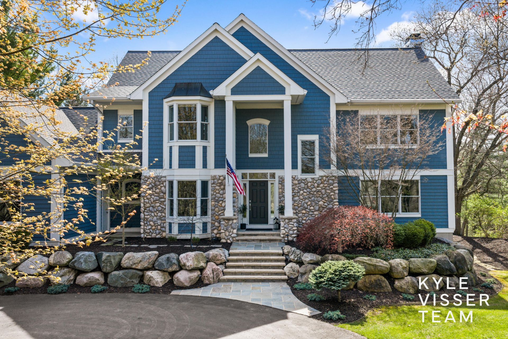 Set on a quiet cul-de-sac in Catamount, this 6 bed, 4.5 bath home sits on a private 1.7-acre wooded lot, just minutes from Ada Village, parks, and Forest Hills Public Schools. The main level offers a spacious open living, dining, and kitchen area with a large center island, plus a screened porch and deck overlooking the serene backyard. Upstairs features a generous primary suite with soaking tub, shower, and walk-in closet, along with 4 additional bedrooms and 2 baths, including a guest suite. The walkout lower level includes a rec room, home theater area, wet bar, and additional bedroom and bath. Enjoy a beautifully landscaped yard with mature trees, raised garden beds, fire-pit, patio, and outdoor kitchen. Extensive updates throughout complete this exceptional home.