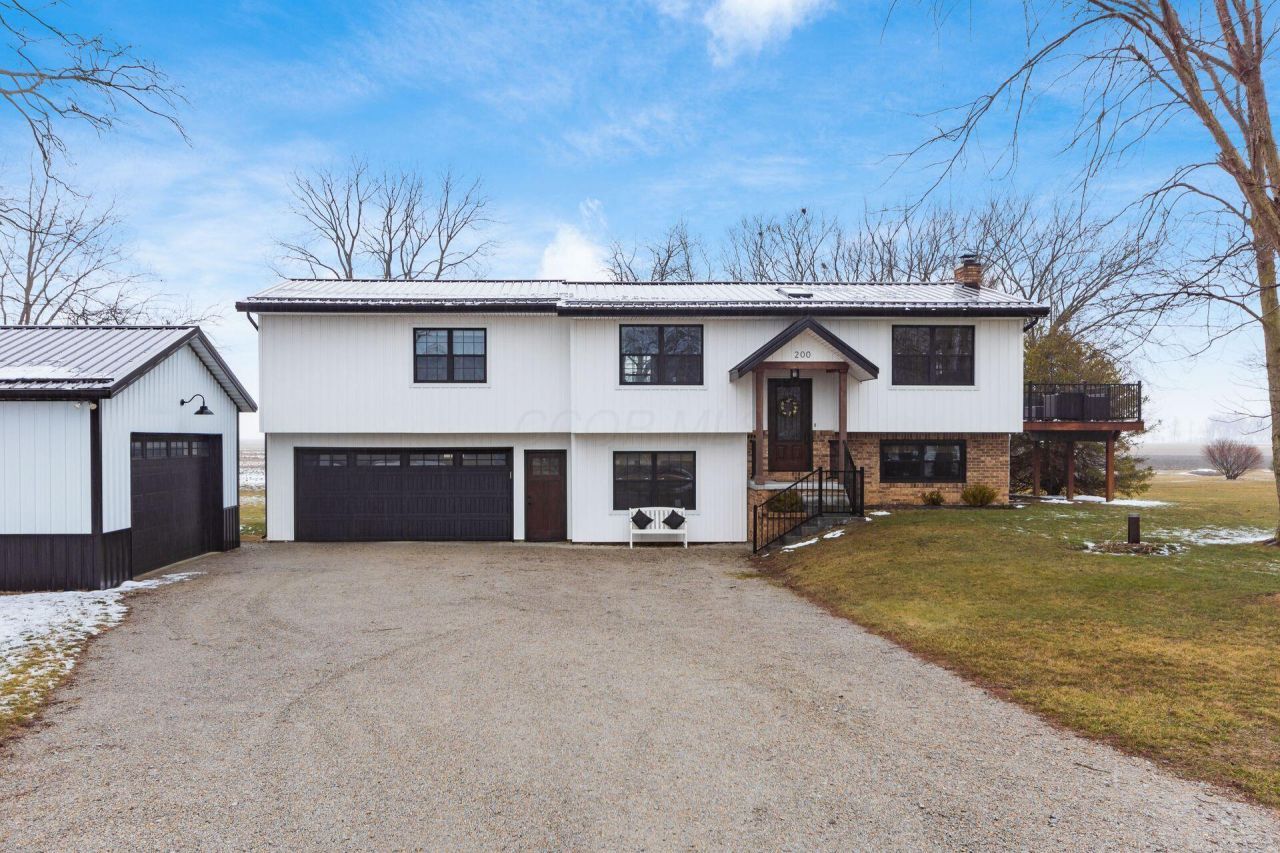 Modern farmhouse-inspired bi-level that lives large, feels current, & delivers the kind of outdoor space that makes weekends magical! Situated on 1.56 acres in the highly desirable Jonathan Alder School District. Updates galore in this home! The kitchen is a true showpiece, featuring quartz countertops, a generous island, stainless steel appliances which include a gas range, farmhouse sink, & subway tile backsplash. Butler's pantry adds extra storage & prep space. Shiplap walls & ceilings bring texture & character to the lower level, where a welcoming family room invites you. Laundry room, private bedroom, & half bath can also be found on this floor. Upstairs, the home offers 2 bedrooms & two baths total, including a comfortable primary retreat. Updated lighting & wrought iron staircase spindles add just the right amount of polish, while the bi-level layout provides separation between social & private areas. Plenty of space for parking & storage in 2 separate garage spaces. Property boasts both a 2-car attached & detached garage with additional heated room that would make a great gym or office space. Fenced space in yard is great for pets or children. Close proximity to Little Darby Scenic River Preserve & Choctaw Lake!