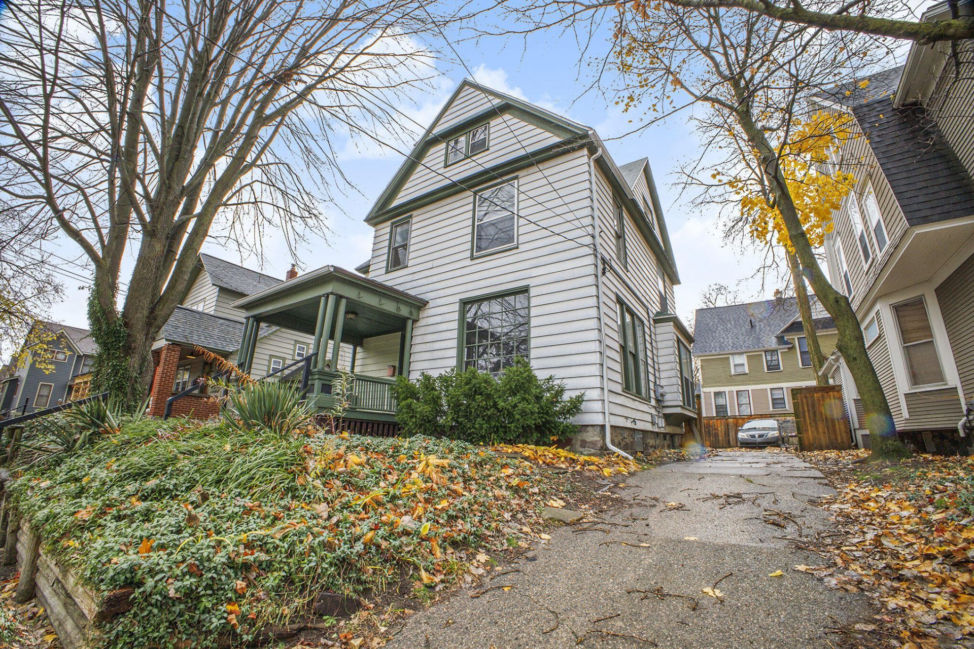 Built for Judge Harry Jewell in 1906, this elegant home is located in the heart of East Town, within the Fairmount Square Historic District, and just a short walk to many of GRs most popular restaurants and brew pubs. Entering the house from the large front porch, youll immediately appreciate the tall ceilings and large windows. The entry hall has an open staircase, leading into living room with fireplace wrapped in original Pewabic tiles, and freshly refinished original oak flooring. The dining room, a main floor bedroom, a full bath, and renovated kitchen, featuring stainless appliances. The second floor features three more large bedrooms. The third level is finished with more living spaces, including a vaulted living area, artist loft with balcony, or additional bedroom; and a second kitchen. The fenced back yard, features a garden area and ample off street parking. The large basement is full height and features the laundry area, foam insulation added to all exterior walls
