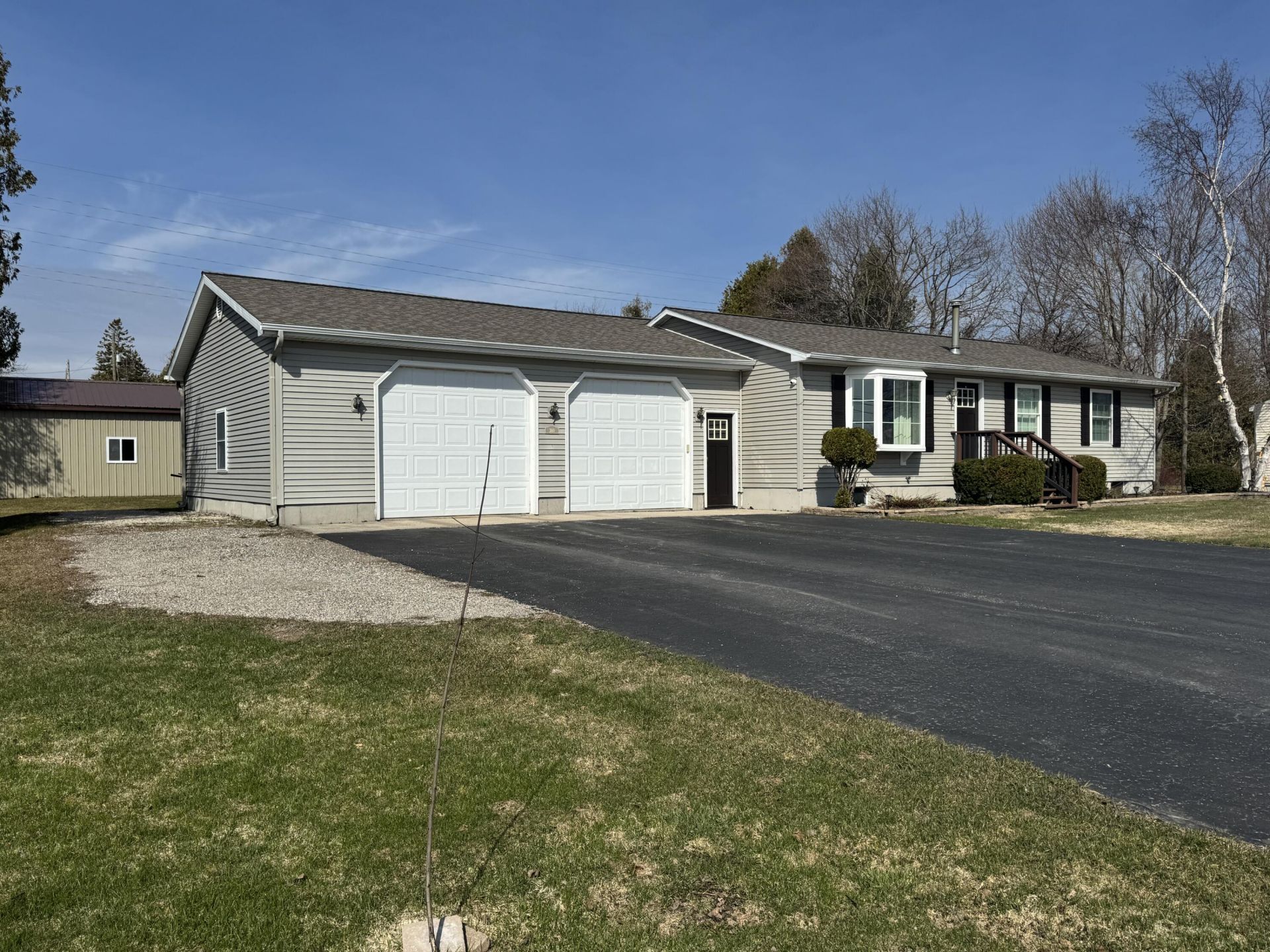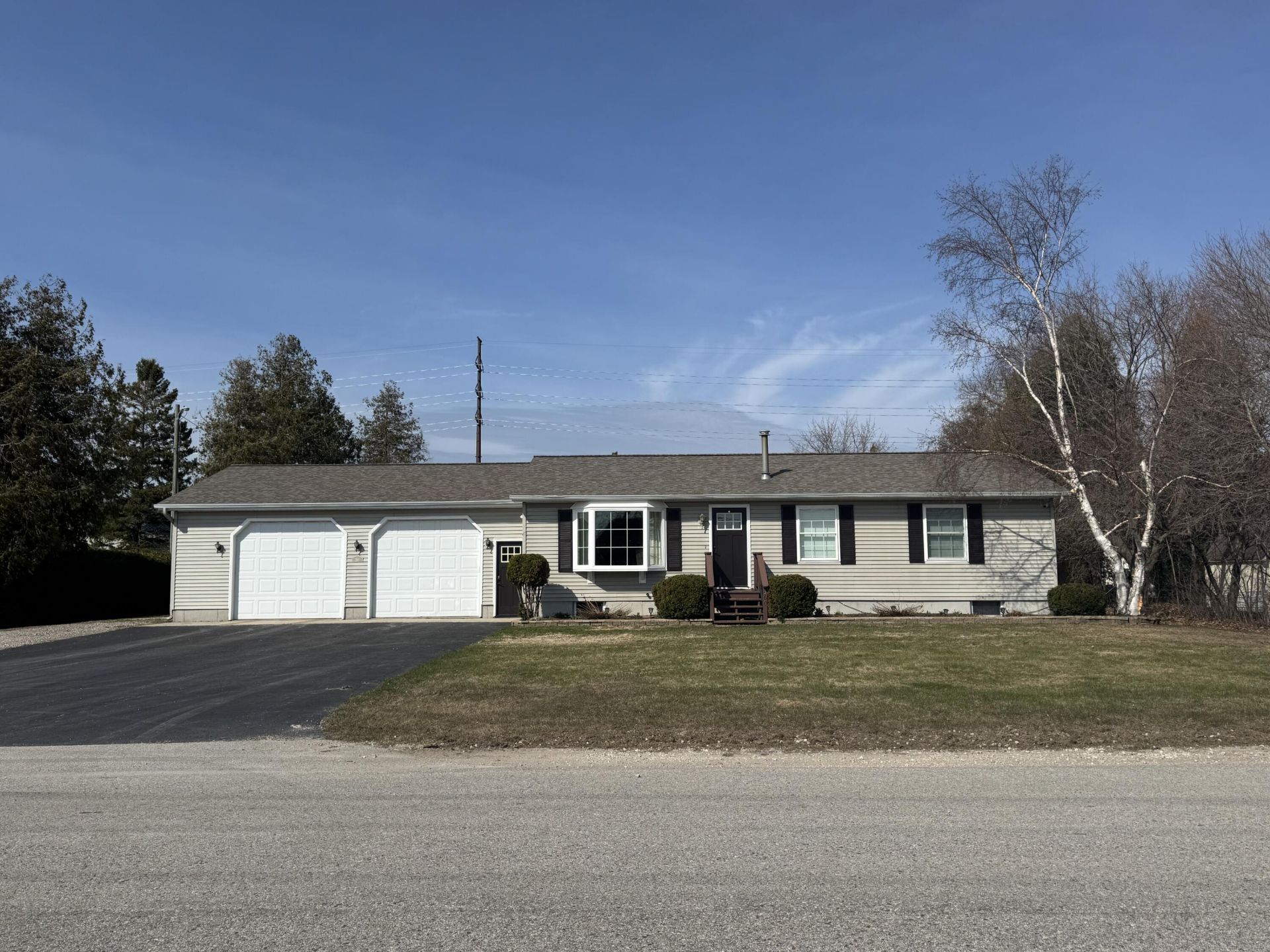Ranch Home in Town! This spacious ranch-style home features an open floor plan with 4 bedrooms and 2 full bathrooms. The main level includes a comfortable primary suite, offering convenient single-level living. New windows and doors 3 years. Roof is 4 years old. The full basement expands your living space with a fourth bedroom, family room, laundry area, and ample storage. A 3-car heated attached garage provides plenty of room for vehicles and workspace. Step outside to enjoy the back deck and large, beautifully landscaped yard, complete with a 30x22 pole barn--perfect for storing all your toys or extra equipment. Sump pump in basement with battery backup.