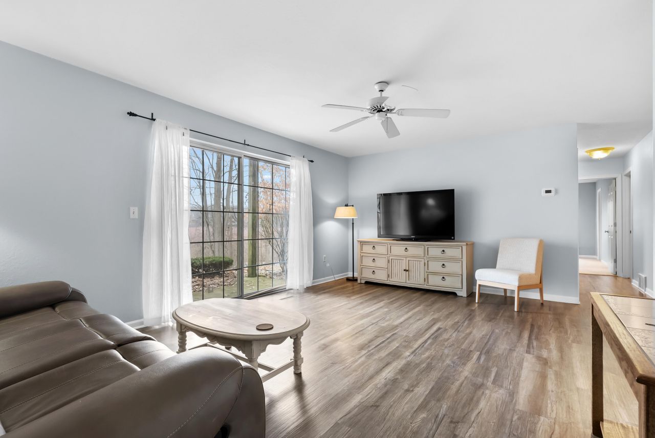 Enjoy easy, low-maintenance living in this beautifully updated ground-floor condo with a private patio overlooking the wetlands. The stunning kitchen features soft-close white cabinetry, granite countertops, tile backsplash, snack bar, pantry, and a brand new zero-turn microwave. Open dining and living spaces with vinyl plank flooring offer a comfortable flow for entertaining, while the spacious primary suite includes a walk-in closet and private bath. With 2 full bathrooms, in-unit laundry, an oversized detached garage with new door, patio storage, and brand new furnace and central air (2026), this condo combines style, convenience, and peace of mind in a prime Portage location.
