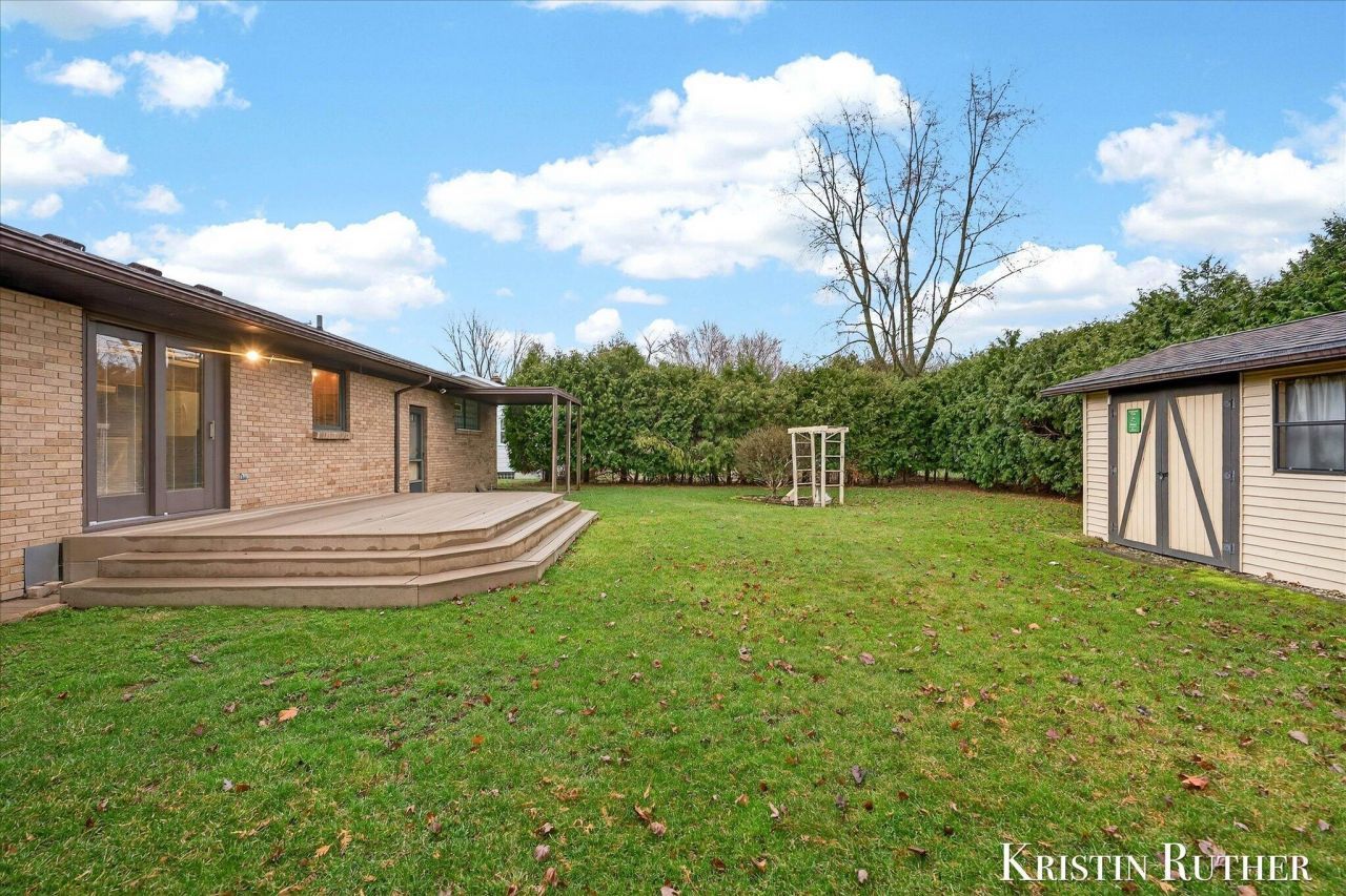Welcome to a super clean, well-maintained 3-bedroom home located on a quiet block. This walk-to-school location offers the kind of everyday lifestyle buyers want--kids riding bikes, neighbors waving hello, and a true sense of community. Inside, the home features new carpet, a flexible layout with 2 baths. A practical mudroom provides space to hang coats, backpacks, & bags, keeping life organized as you come and go. The dry basement offers additional space for storage or future use & includes an extra freezer that stays with the home. Major mechanicals offer peace of mind with a furnace & A/C installed in 2014. Outside, the private backyard is ideal for play, pets, and easy outdoor living with a composite deck, garden beds, garden arch, underground sprinkling, & a large storage shed. The 1.5-car garage features hot and cold running water, making it perfect for washing pets or cleaning up after outdoor activity. Close to local ballparks and the Grandville Fourth of July parade route.