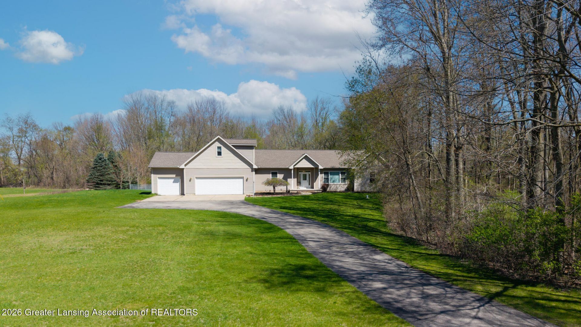 Welcome to 4711 Pardee Rd in Webberville, this beautifully maintained ranch-style home offers spacious single-level living in a peaceful setting. Featuring wide hallways, 9-foot ceilings, and a bright open floor plan, the home feels welcoming and roomy throughout, with large windows that bring in plenty of natural light. The layout includes a convenient main-floor laundry room and a versatile bonus room above the garage, included in the total square footage and perfect for a home office, guest space, or recreation room. Hardwood floors add warmth and timeless appeal throughout the home. Step outside to enjoy the fenced backyard, while half of the property is nestled in the woods, offering privacy, natural beauty, and a serene atmosphere. Additional features include a whole-home generator and a reverse osmosis water filtration system at the kitchen sink. With thoughtful care and excellent maintenance, this home is move-in ready and offers the perfect blend of comfort, space, and country charm.