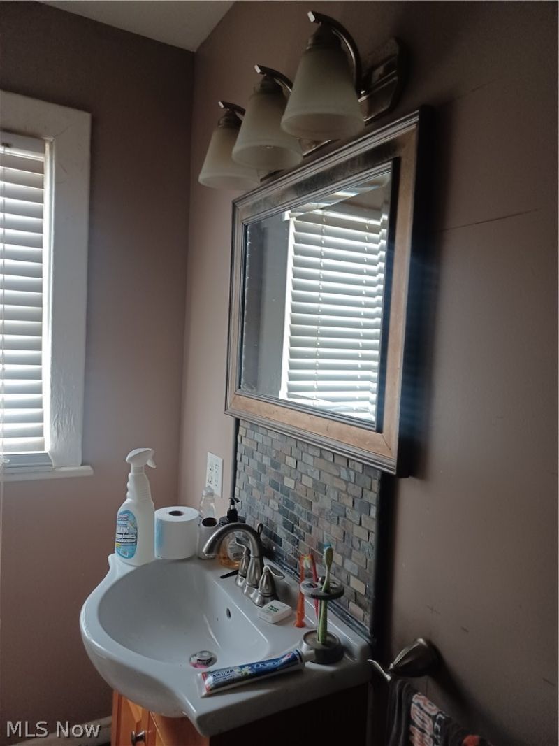This was a family home that was updated in Kitchen with new cabinets, paint, appliances counters, and flooring. Dining room is large and was freshly painted in modern color scheme. Living room also painted and laminate flooring installed over all the first floor. Front enclosed porch all done up as setting, lounging area. Rear porch is lined with large windows and space enough for table and chairs overlooking fenced in back yard! and huge garage with geni, & great storage. Upstairs is nicely carpeted with newer carpet, Primary bedroom has 2 very nice closets, lots of windows and attractive paint & ceiling fan. 2nd bedroom is also spacious & well lighted & carpeted. The full bath was remodeled with stone tyle in Tub/Shower combo. Modern vanity & med. cabinet, great modern lighting, GFCI OUTLETS, and attractive ceramic backsplash! Stone tile on floor as well. Full, Tall basement with toilet , Newer GFA furnace, newer HWT and fully updated breaker box and wiring. Nicely designed laundry area with appliances. Water leak in upstairs bath, water off at meter. Some damage but dry. EASY to make this a great home, come see for yourself.