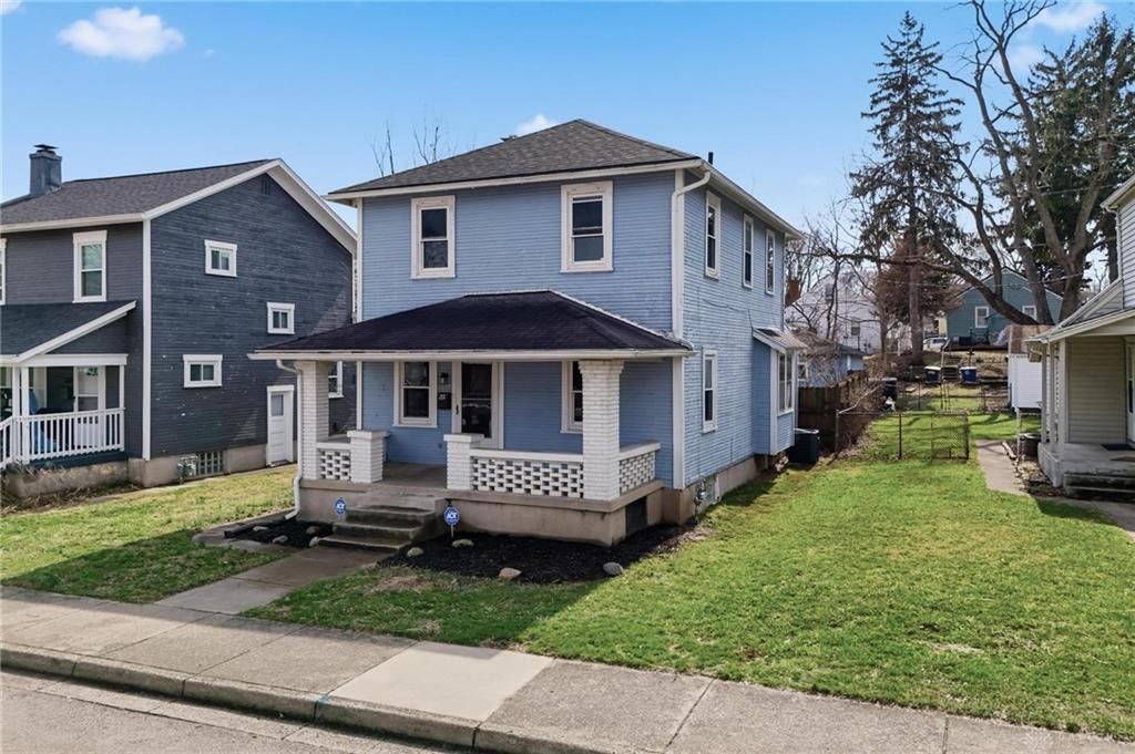 Great home and Investment opportunity near the University of Dayton and downtown Dayton with strong rental potential and a history of tenant demand in the area. This two-story home offers approximately 1,452 square feet with 3 bedrooms and 2 full bathrooms. The main level features refinished hardwood floors (2025), a spacious front living room, and a dining room with a built-in window seat and arched doorway detail. A full bathroom is located off the dining room and features a distinctive stained glass window. The kitchen includes a marble backsplash and connects to a rear laundry and mudroom area. Upstairs you’ll find three bedrooms, including a bright front bedroom with generous closet space. A second full bathroom serves the upper level. Major mechanical updates include a new roof (2024) and central air (2024). Additional features include a full basement, vinyl windows with some original wood windows remaining, a covered front porch, and a detached one-car garage. Located near the University of Dayton campus and downtown Dayton amenities, this property offers convenient access to major employers, dining, and entertainment.