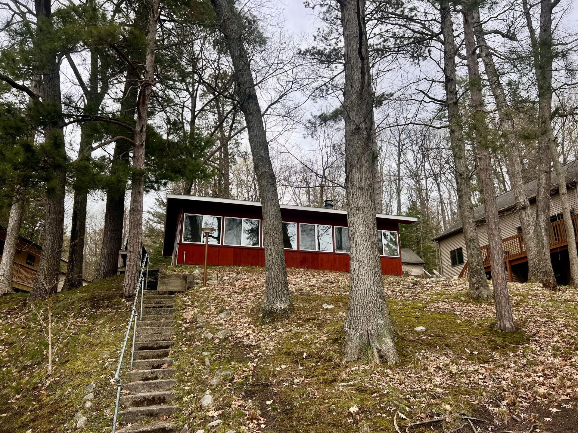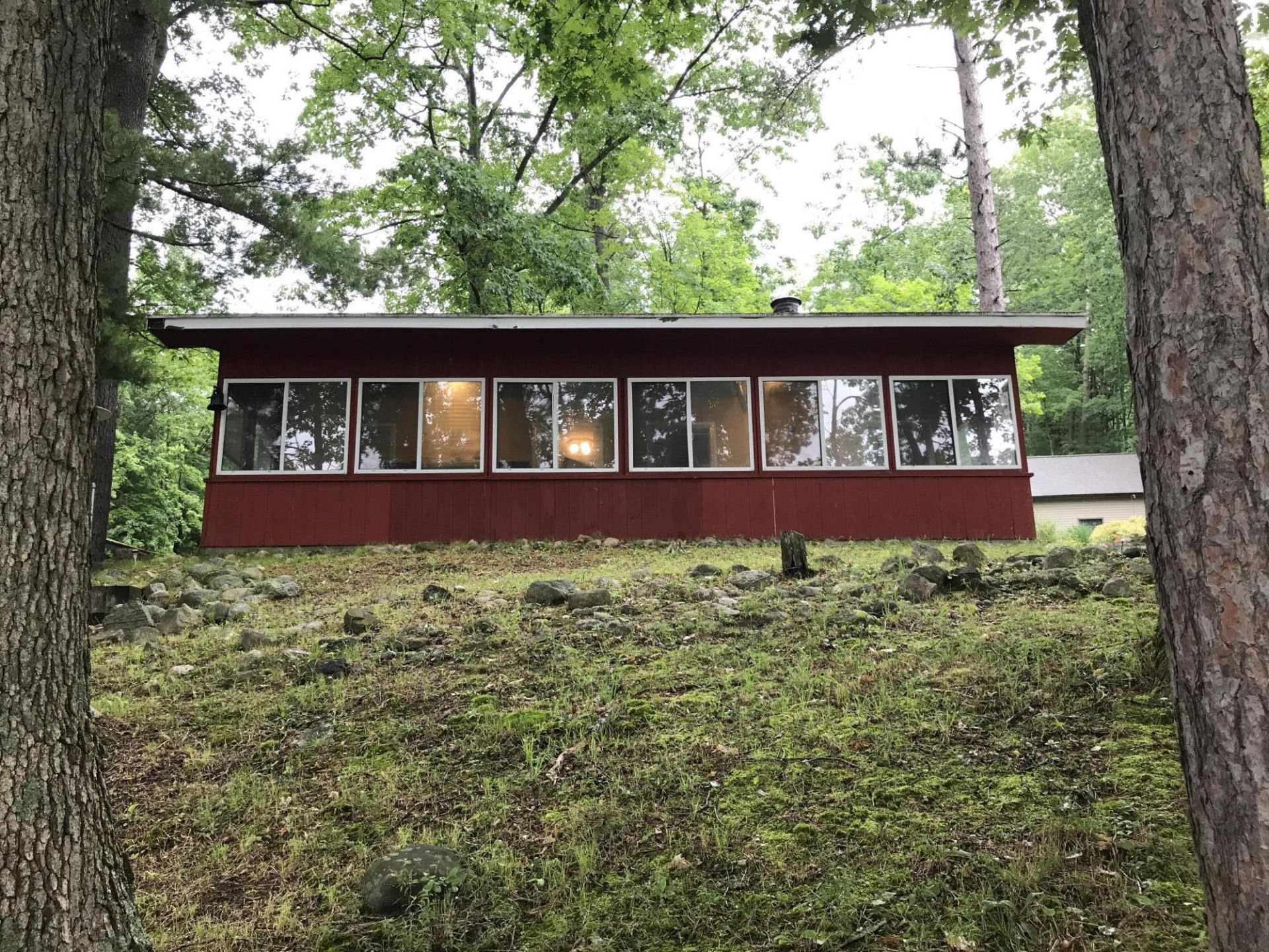 QUAINT LAKESIDE CABIN ON BEAUTIFUL BLUE LAKE! Enjoy 60 feet of private frontage and your own sandy beach, perfect for relaxing days on the water. This turn-key 3 season cottage features 3 bedrooms, many updated windows, a newer roof, wood stove and a welcoming front porch with stunning lake views. A newer aluminum dock is included for easy lake access. Blue Lake is a peaceful 69-acre private lake with a 10 HP limit, known for its excellent fishing. As an added bonus, the association offers 259 acres of shared land for recreation, including hunting and scenic trails. A true gem!