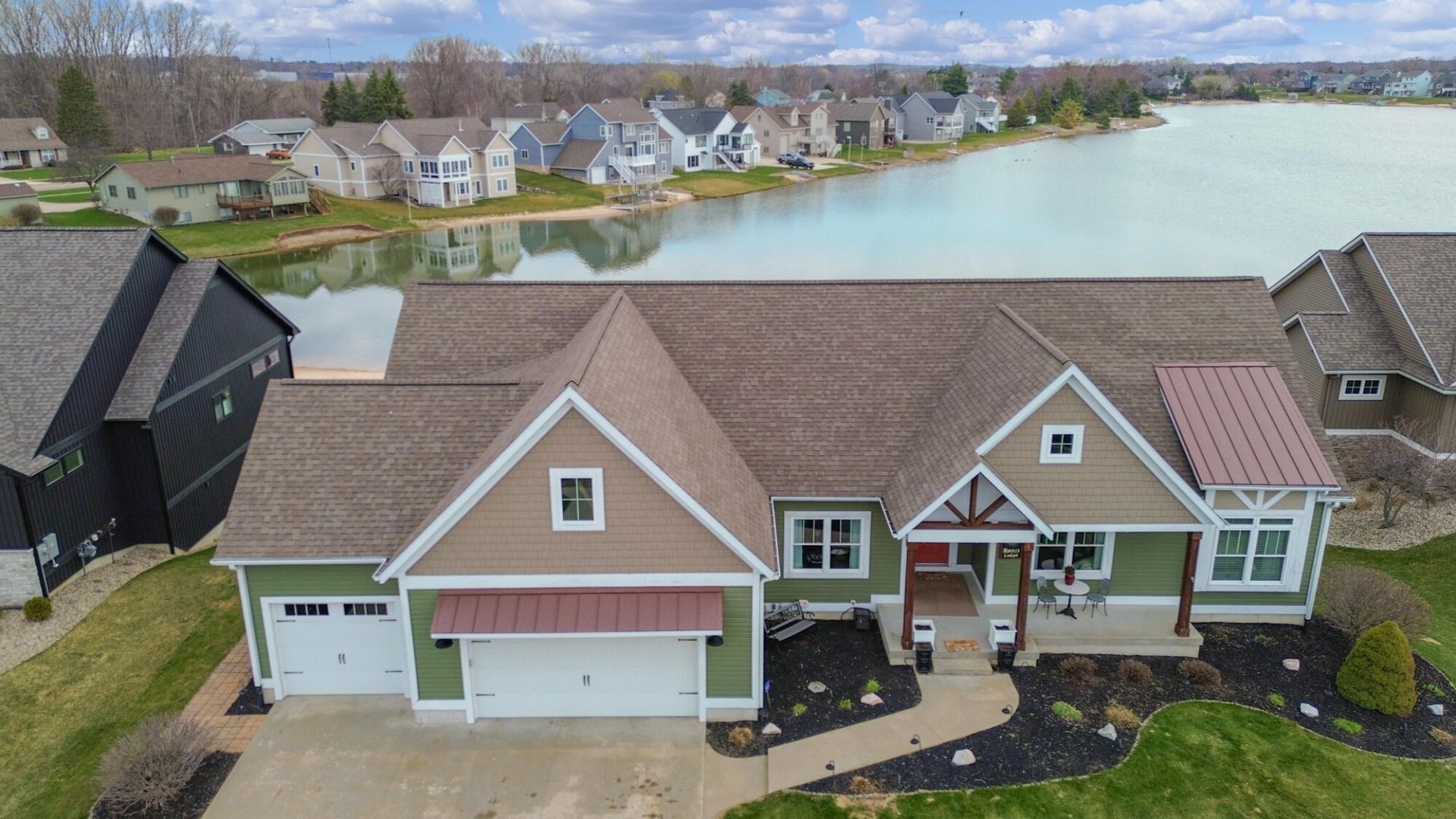 Welcome to this exceptional opportunity to own a beautifully updated lakefront home in Hudsonvilles highly desirable Georgetown Shores community. Located on the west all-sports lake with 102 feet of private water frontage, this property delivers the ultimate waterfront lifestyle. Thoughtfully designed for everyday living and entertaining, the outdoor spaces are a true highlight featuring an additional rear garage for all your lake toys, two patios and a spacious composite deck with pergola. Inside, the main floor offers an open-concept layout filled with natural light. The kitchen, featuring white cabinetry, granite countertops, stainless steel appliances, and a wine fridge, is flowing seamlessly into the living room with soaring cathedral ceilings and a cozy gas fireplace. A formal dining room and a dedicated office provide added versatility and function. The main floor also includes 3 bedrooms and 2.5 baths, highlighted by a stunning primary suite with cathedral ceilings and a... beautiful tiled walk-in shower. Hardwood floors extend throughout, complemented by a spacious mudroom and convenient main-floor laundry. The finished lower level expands your living space with endless possibilities, featuring a custom bar area with a striking live-edge wood countertop, a kitchen, 2 additional bedrooms, a full bath, and a large recreation area, ideal for entertaining guests, or multi-generational living. This is more than a home, its a lifestyle. Experience year-round lake living in one of Hudsonvilles most sought-after communities.