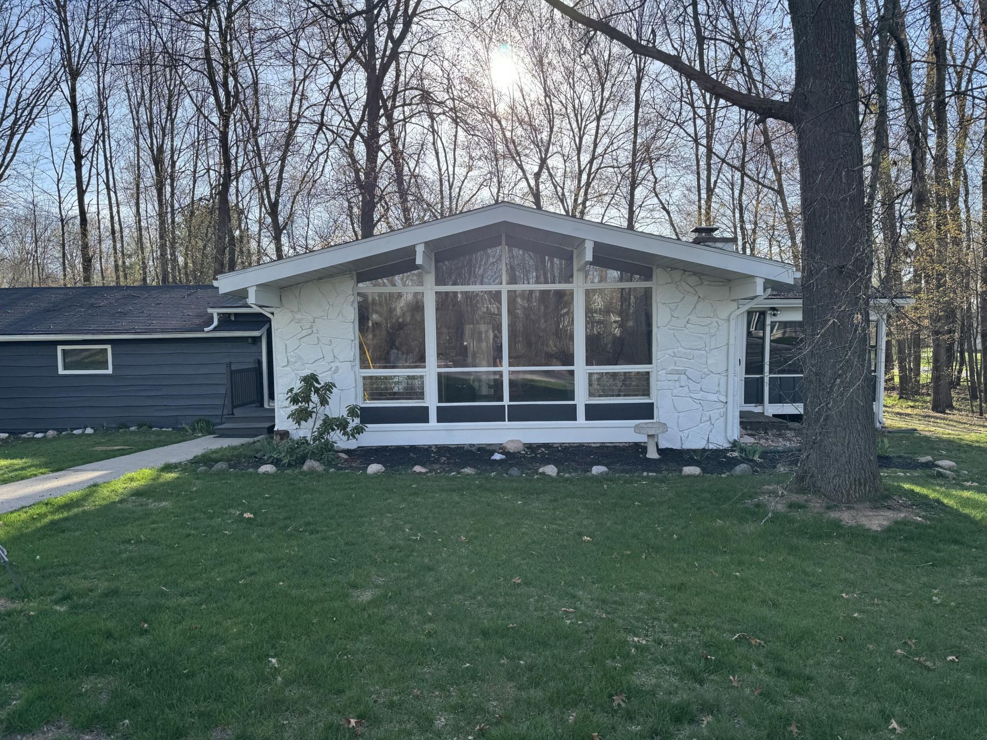 Great location! - corner lot just off the main lake area of West Royal and 1 block from Lookout Point Beach! Canadian Lakes amenities with elegant curb appeal, this Mid-Century style 3 bedroom, 2 bath home has warm textures & natural wood tones. Current owners have done all the major maintenance upgrades including new roof, flooring, kitchen cupboards, new HVAC, hot water heater & renovated bathroom. Open main living floor plan with nice large windows to bring in plenty of light. Vaulted ceilings in the living room with a beautiful gas log fireplace. Easy access kitchen, stainless appliances. Large sunroom to enjoy the outdoor views or a perfect home office setting. Full basement has a large family room, workshop area and a large storage room. Two car garage and extra parking pad in front. Beautiful yard with wooded area to protect privacy. Learn more about community features and membership benefits at canadianlakes.org - and experience The Lake Life!!!