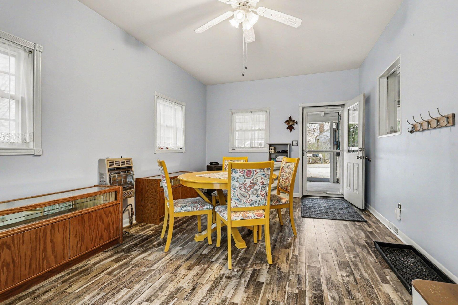 Welcome to your peaceful getaway on private Wall Lake, where everyday living feels like a vacation. This 3 bedroom, 1 bath cottage offers 1,530 total sqft of comfortable open concept living w/beautiful water views and direct lake access just steps from your deck. Enter through a welcoming sunroom a perfect spot for morning coffee with a sliding door opening to the deck & lake views. The kitchen features cherry cabinets, stainless steel gas stove & stainless refrigerator (both purchased in 2018). Upstairs you will find two nice size bedrooms plus attic storage. Additional storage available in the Michigan basement. The spacious back deck runs the length of the house, ideal for gatherings or enjoying lake views. Boat launch & water access are conveniently located just across the street from the deck. The property includes three parking spaces in front of the home. Beautifully maintained yard w/storage shed, peach trees, large strawberry patches & landscaping all around. Enjoy evenings around the stone block fire pit in the backyard. This home blends comfort, updates and natural beauty perfect as a year round residence, vacation home or investment property. Reserved Items: Freezer in Breezeway/Patio Room, Corner China Cabinet in Dining Room and Pellet Stove.