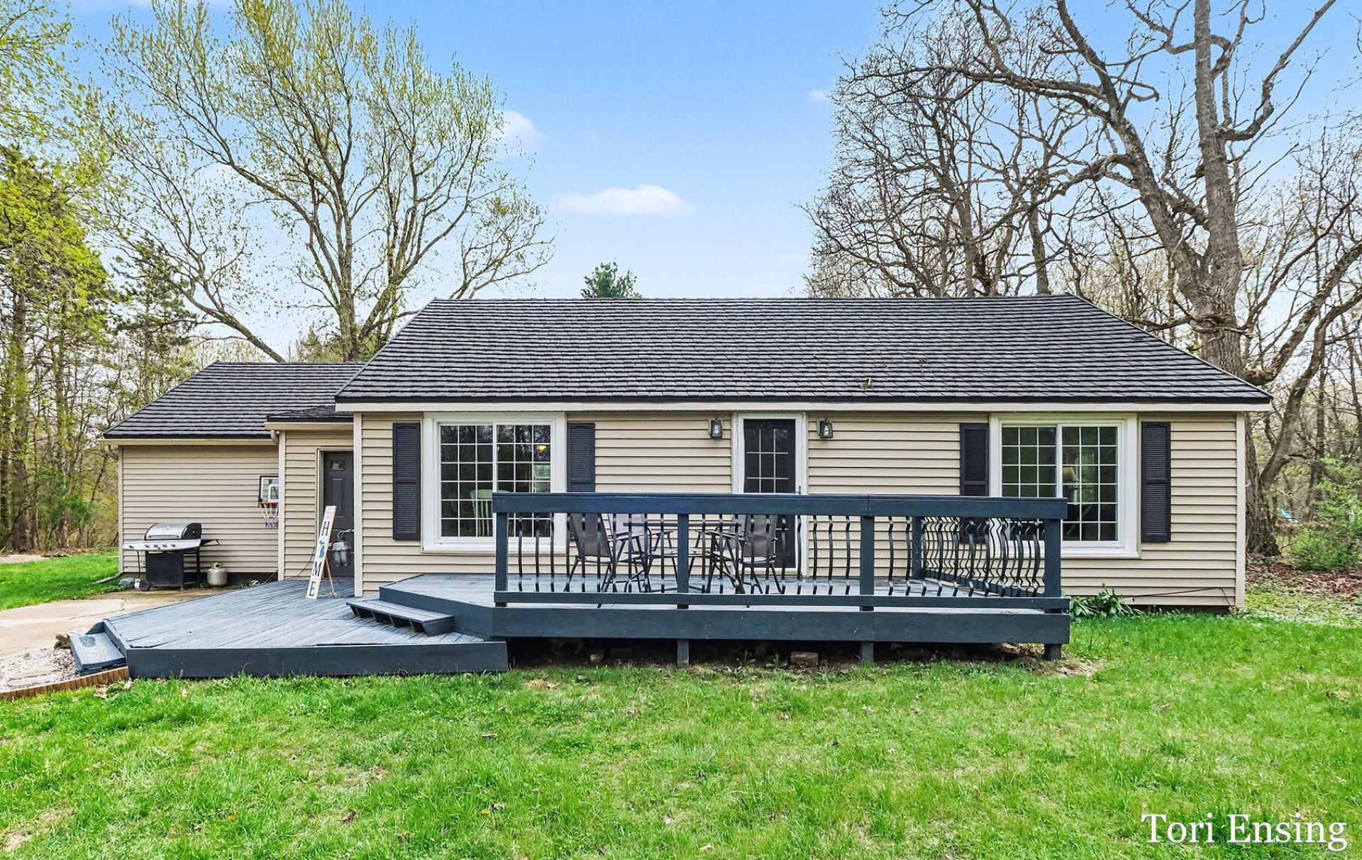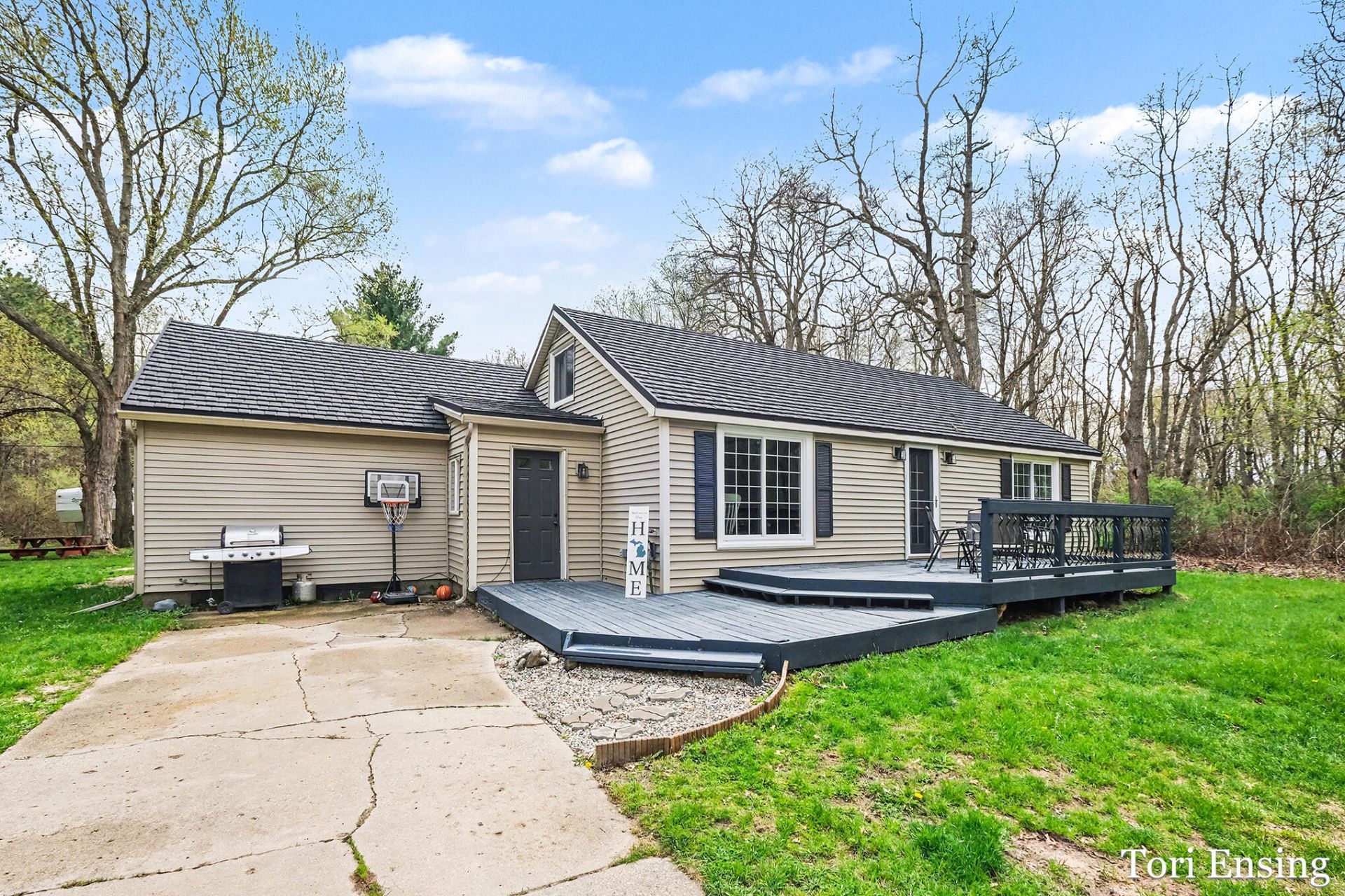 Move-in ready home sitting on 1.2 acres and surrounded by state land. Main level offers kitchen with all appliances to stay, open to dining room and living room. Living room has large windows and offers a ton of natural light! Mud-room with separate laundry area & storage. 3 bedrooms and 1 bathroom finishes the main. Upstairs you will final another bedroom with room for an office, play room, etc. New stone coated steel roof in 2022. Giving the feel of traditional shingles, but with the durability of Steel. Comes with a lifetime, transferable warranty. Nice big front porch and back deck. New furnace in 2020. Less than 1/2 mile from Fred Meijer trail connector, natural gas & only minutes from downtown Greenville! Schedule your private showing today!