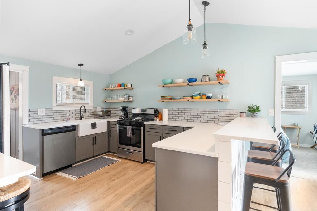The one you've been waiting for... Completely redone 2 bedroom / 2 bath home situated just two blocks from Lake Charlevoix Public Access. Ideally located just one mile from downtown Boyne City and one mile to Young State Park; amenities and adventure are just out your door. A corner double lot, peeks of the lake on the deck, new furnace, A/C, plumbing, a detached garage, and fenced in yard round out an incredible package. Primary home, vacation home, or income property, this home has flexibility and is ready for new owners. Don't let this be the one that got away!