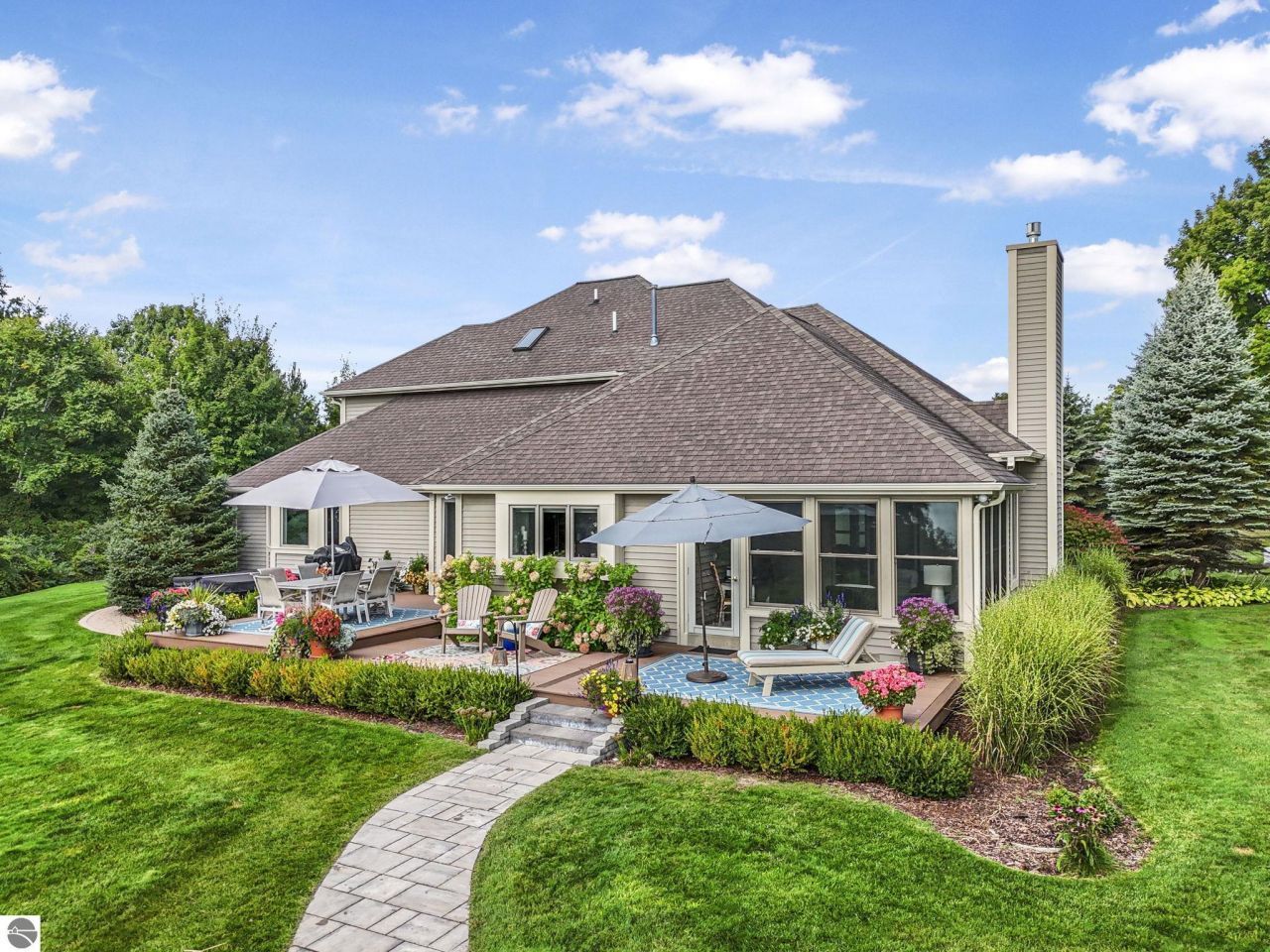 Baystar Estates | Old Mission Peninsula!! A rare opportunity in Baystar Estates???offering over 1,000 feet of East Bay shared frontage paired with a stunning custom home on 1.5+ acres. This 3,500 sq. ft. residence features 4 bedrooms, 3.5 baths, and a 3-car garage, all set against sweeping views of East Bay. Inside, you???ll find a beautifully appointed kitchen with wet bar, built-in buffet, and hidden pantry, while the main floor primary suite offers a spa-like bath retreat. Enjoy indoor/outdoor living with a screened porch and a dream backyard overlooking the water. The grounds include hobby grape vines woven into the landscaping, enhancing the home???s unique character. Just a short golf cart ride or stroll takes you to the private neighborhood frontage, complete with common areas for recreation and relaxation. Impeccably maintained and thoughtfully designed, this is an exceptional blend of location, lifestyle, and luxury.