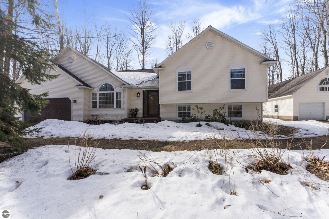 Easy to show and ready for Spring with new owners! This Long Lake township home is in a highly desirable Westside neighborhood with a two-story 24x40 pole building, 3 bedrooms / 3 bathrooms and a walkout lower-level. The 1.12 acre parcel offers a wooded setting that brings the best of nature while offering privacy and seclusion, yet you have friendly neighbors in reach. The main living space has vaulted ceilings and a large sun-filled window along with beautiful hardwood floors that lead into the thoughtfully updated kitchen featuring custom cabinetry and granite countertops. The main-floor also offers dining, laundry and a full bathroom. A few steps up to the upper level, you'll find 3 comfortable bedrooms and a full bathroom. A few steps down from the main floor is the lower level with another spacious living area with gas fireplace and a 3rd full bath and ceramic tile walk-in shower. Almost 2000 finished square feet inside, there is also no worries about storage or room to grow - the lower quad level has another 520 SF of unfinished area for storage or flex space. Outside is where this property truly sets itself apart. In addition to the attached garage, a two-story pole building with its own driveway and front and rear overhead doors offers endless possibilities???whether you need space for boats, snowmobiles, vehicles, hobbies, or a workshop. It???s a feature buyers are constantly searching for, especially here in Northern MI! All of this is just two miles from Long Lake, one of the area???s most beloved all-sports lakes, known for its sandy shoreline, crystal-clear water, and year-round recreation. This is the kind of location that allows you to slow down, spread out, and fully enjoy the Northern Michigan lifestyle, while still being moments from Traverse City???s shopping, dining, and amenities. This home isn???t just a place to live???it???s a lifestyle opportunity. Once you see it, you???ll understand why properties like this are so hard to replace!
