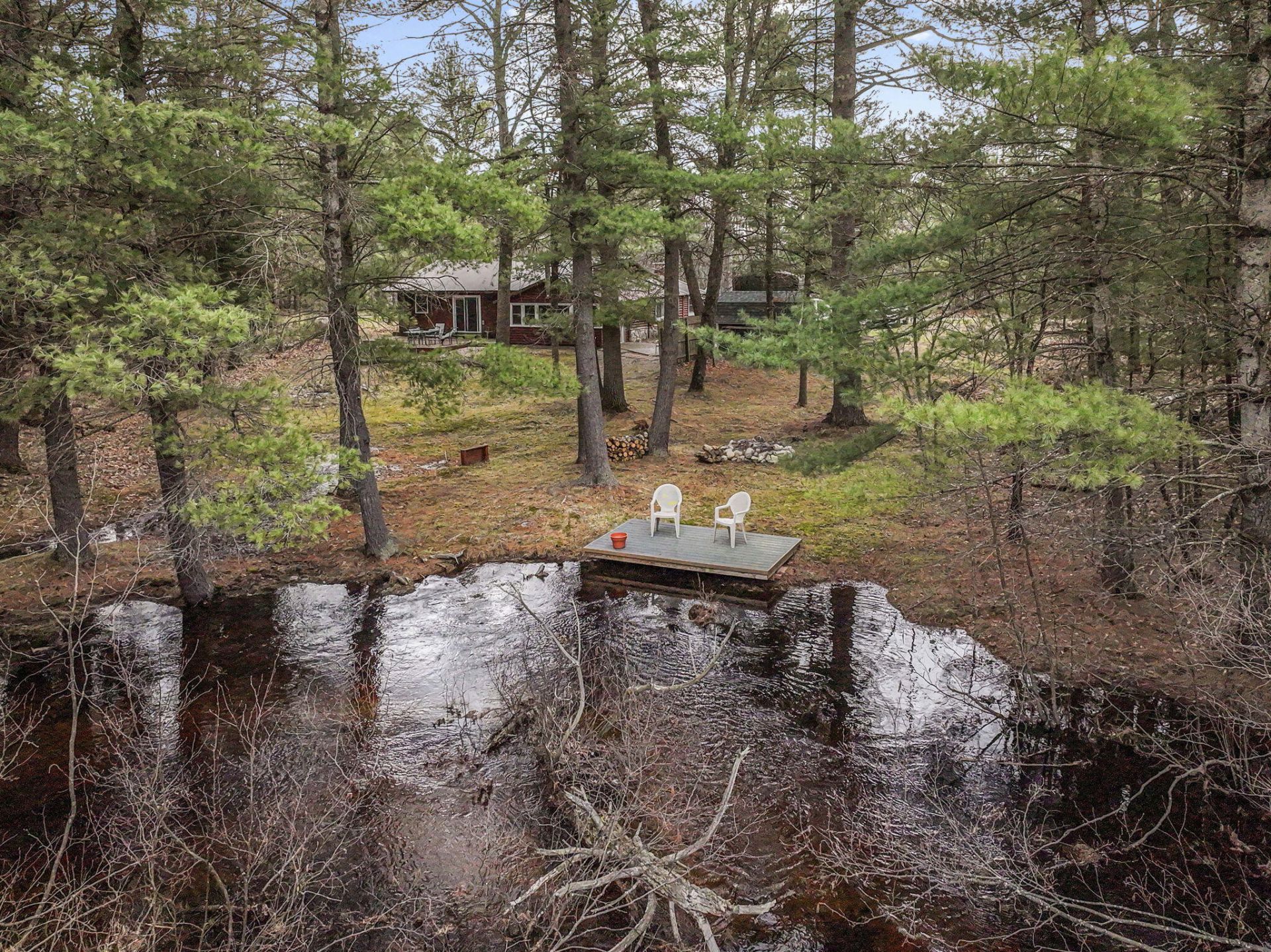 Tucked away in a peaceful, wooded setting, this charming log cabin offers the perfect blend of rustic character and modern comfort. Situated on 1.78 acres with an impressive 148 feet of frontage on beautiful Big Cannon Creek, this property is a nature lovers dream. Step inside to find a warm and inviting interior featuring updated laminate flooring, a spacious kitchen, a cozy pellet stove, and a stunning stone chimney that serves as a striking focal point. With two bedrooms, two bathrooms, and main floor laundry, there is plenty of space for relaxing weekends or year-round living.Step out onto the deck and take in the sights and sounds of nature, where you can enjoy watching local wildlife while listening to the soothing flow of the creek. Enjoy direct access to thousands of acres of adjacent state land, making this an ideal retreat for hunting, hiking, and outdoor recreation right out your back door. The property also includes a 20x30 pole barn, carport, and a storage shed. Whether you are looking for a quiet getaway or a full-time residence surrounded by nature, this well-maintained cabin offers privacy, scenery, and endless opportunities to explore the great outdoors.